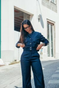 Versátil e atual, o Tokyo Sport Luxe pode ser combinado com ténis brancos para um visual descontraído e moderno, ou com saltos e acessórios sofisticados para um look de noite cheio de atitude. Seja para um passeio urbano, uma reunião criativa ou um jantar especial, este conjunto adapta-se com naturalidade ao seu ritmo.
