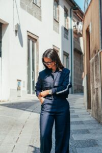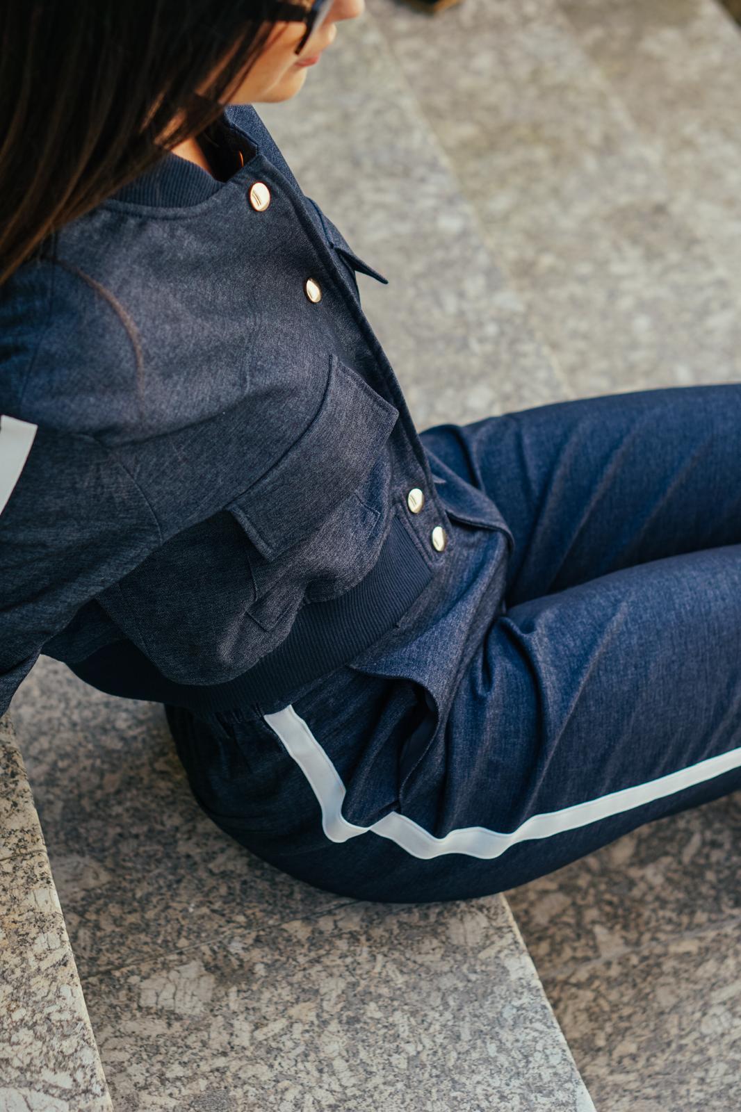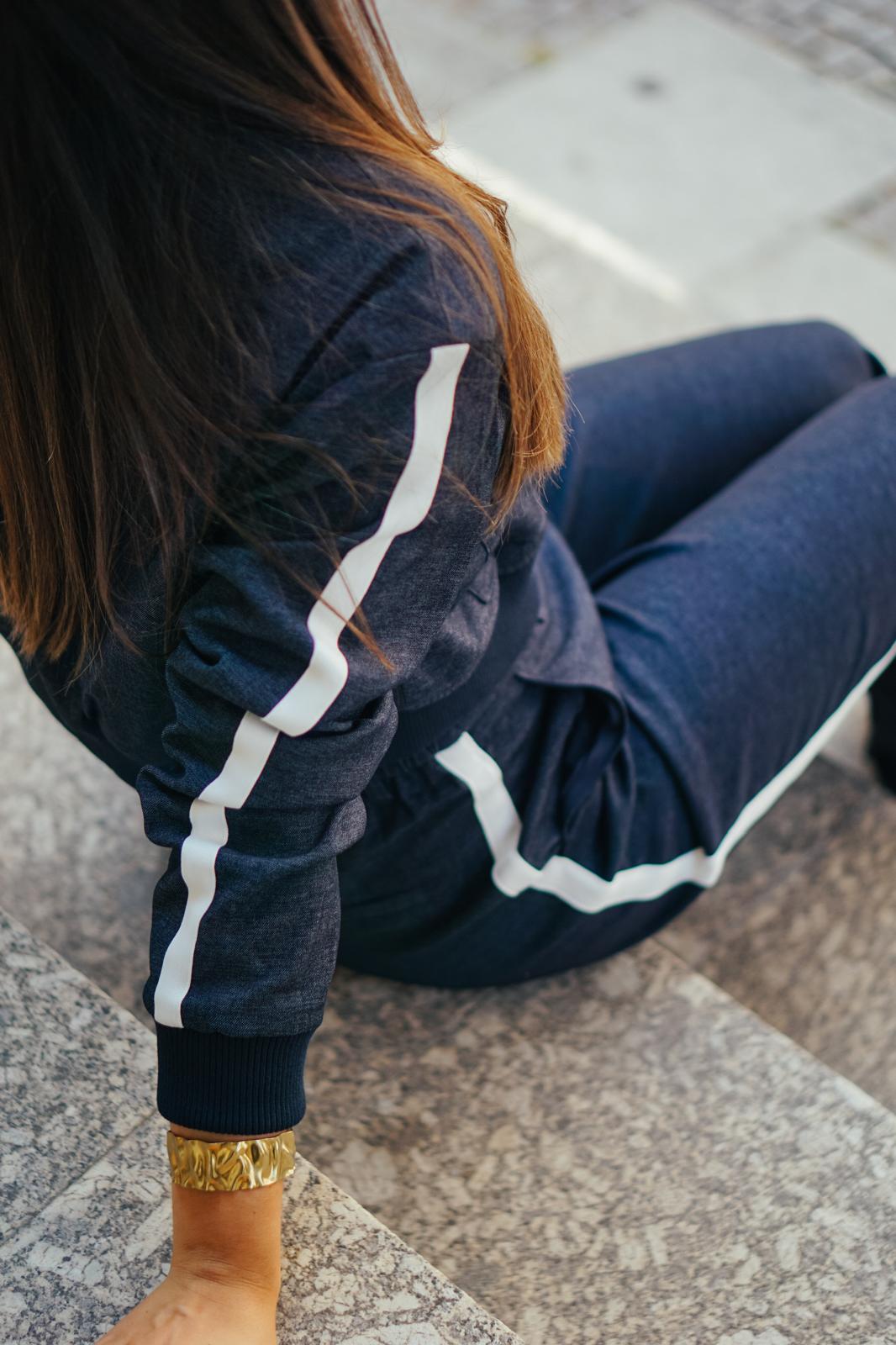Com o Conjunto Tokyo Sport Luxe, a moda urbana ganha uma nova dimensão, combinando linhas minimalistas com detalhes de luxo. Inspirado no estilo cosmopolita das grandes capitais, este conjunto em azul-escuro com risca branca lateral cria uma silhueta alongada e moderna, perfeita para mulheres que procuram sofisticação sem abrir mão do conforto.